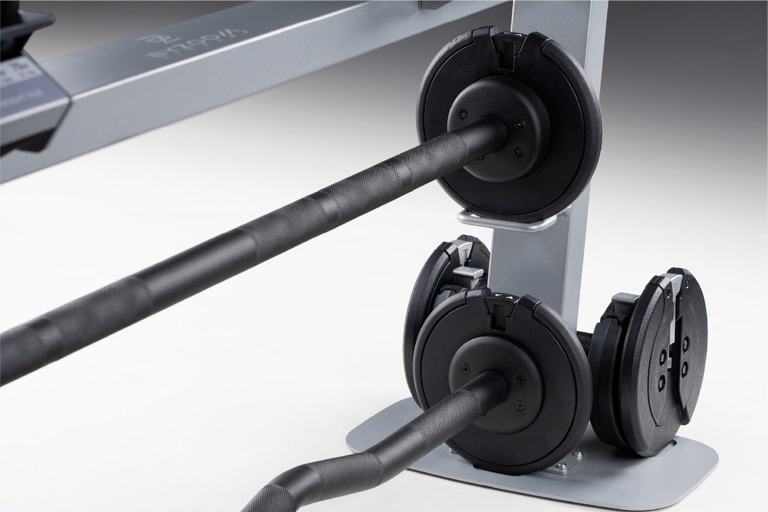 1.將槓鈴調整至最小重量,並將桿子存放在下方支架。