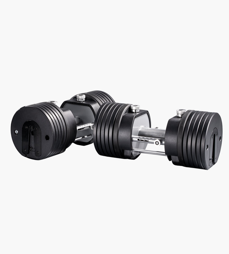 7, 9 , 11, 14, 16, 18, 21, 23, 25, 28, 30, 32, 35, 37, 39, 42, 44, 46kg - QCD system: The patented quick-change-dumbbell system easily lets you switch between multiple weight options