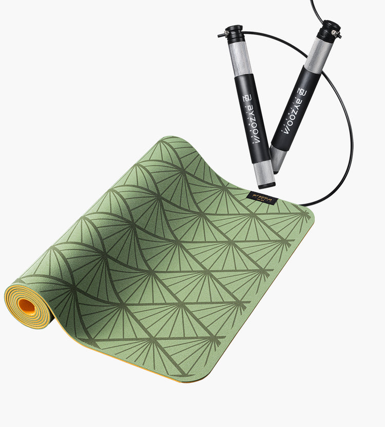 PVC yoga mat 5mm (green) + high-speed training jump rope